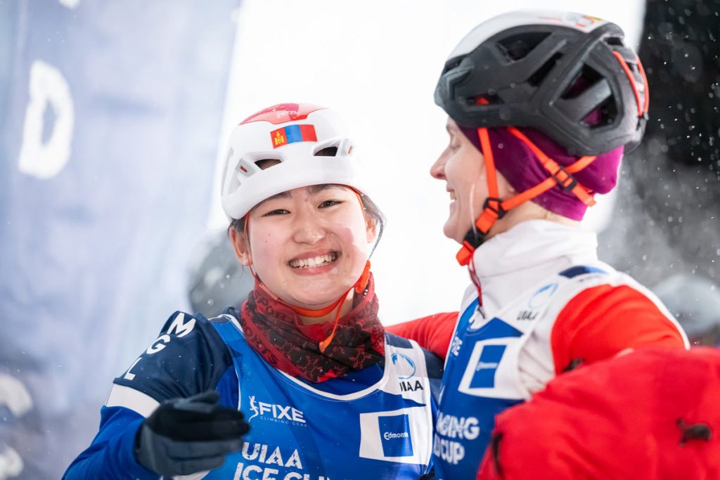 If Jorge Veiga Rodriguez is the break out star in men’s lead than Linus Beck carries that status in the speed. The 22-year-old from Lichtenstein, like van der Steen, had not won a World Cup gold medal until last weekend in Longmont. And like the Dutch athlete, he only had to wait a week to claim a second. In the dual format and in the driving Alberta snow, he defeated Mohammadreza Safdarian of Iran by 15.20 seconds to 15.76. However, silver for the Iranian was enough for him to take the World Tour Title and finish some 33 points ahead of Beck. Despite being World Champion in speed, this is the first time that Safdarian has claimed the World Tour crown. Bronze in Edmonton was enough for Mongolia’s Mandakhbayar Chuluunbaatar, winner of the last two World Tours, to complete the seasonal podium.